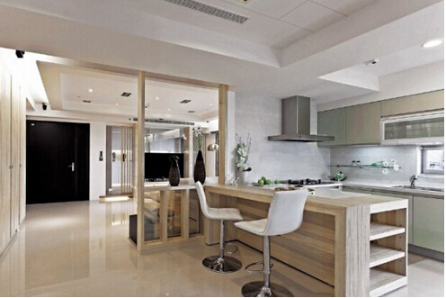 開放式廚房的優點3:開放式廚房可以充分利用空間。開放式廚房可以充分利用地柜與吊柜的空間的墻面,安裝擱架,可以放置消毒柜微波爐或安裝擱板、掛鉤、杯、調料瓶、鏟子、勺子等,這樣就避免了它們占據櫥柜臺面。
