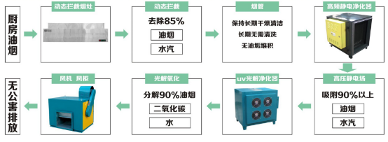 大明廚具針對這一問題,自2000年開始,先后研發了除油率和殺菌除味率達到98.6%以上的高/低空油煙凈化器、低空排放動態攔截油煙凈化一體機和高空排放的動態攔截油煙凈化一體機,能有效解決廚房油煙危害,并能夠長期使用和方便維護。