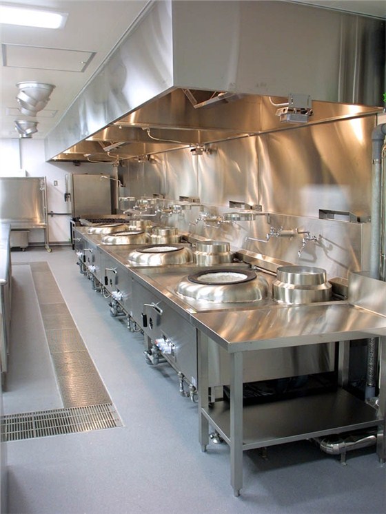 廚房設(shè)施通常包括烹飪加熱設(shè)備、處理加工類設(shè)備、消毒和清洗加工類設(shè)備、常溫和低溫儲(chǔ)存設(shè)備等。通常用的廚房的配套設(shè)施包括:通風(fēng)設(shè)備如排煙系統(tǒng)的排煙罩、風(fēng)管、風(fēng)柜、處理廢氣廢水的油煙凈化器、隔油池等。