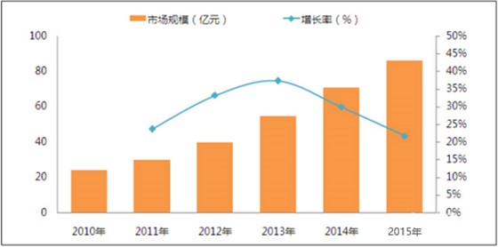 2010-2015年中央廚房設(shè)備市場規(guī)模變化趨勢圖